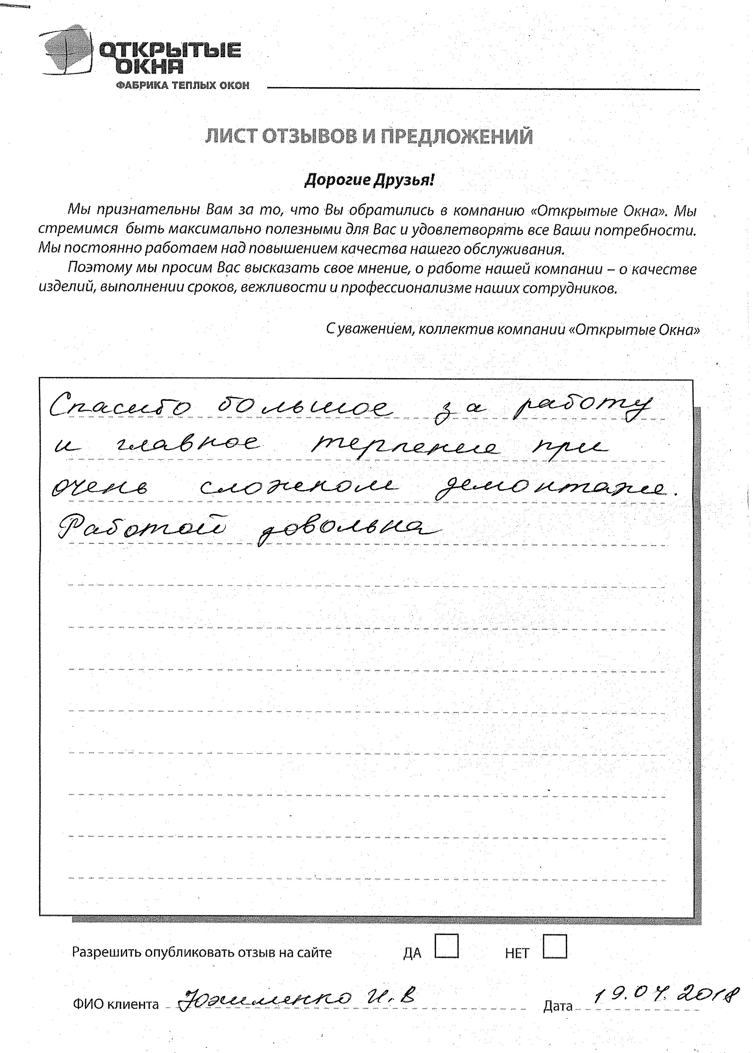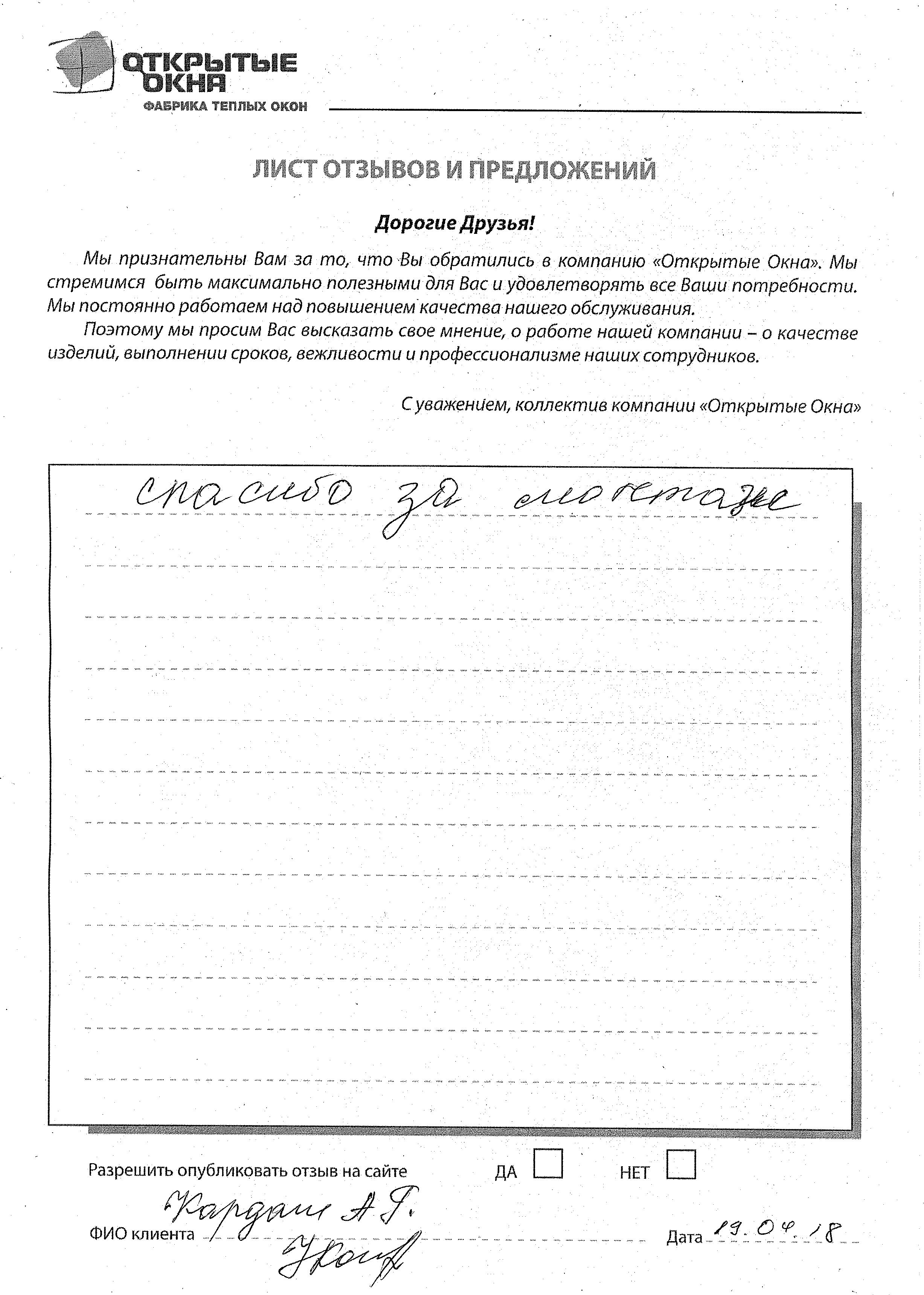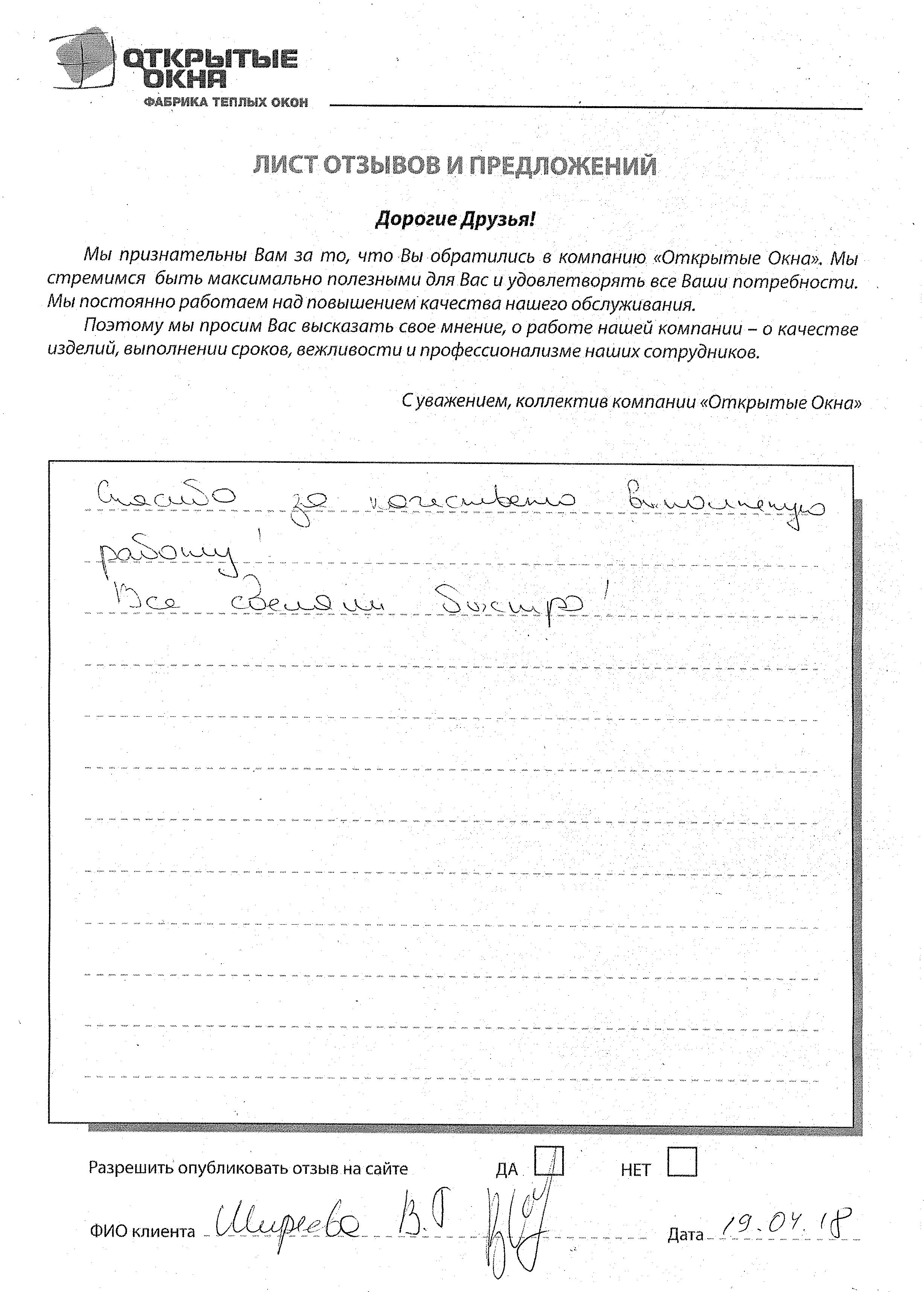 Ребята все сделали хорошо и аккуратно. Большое спасибо. Быстро установили 4 окна.
