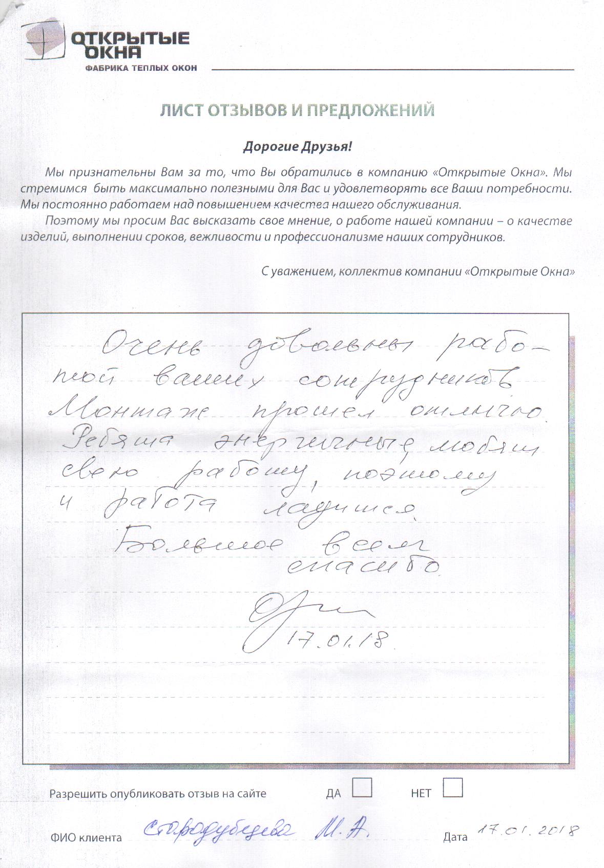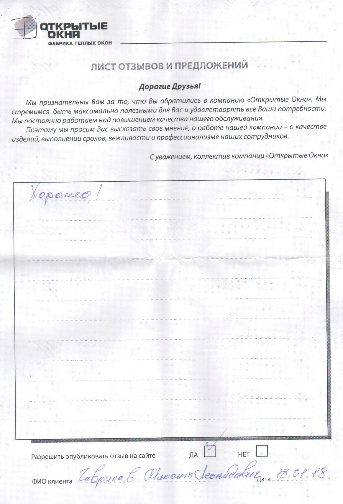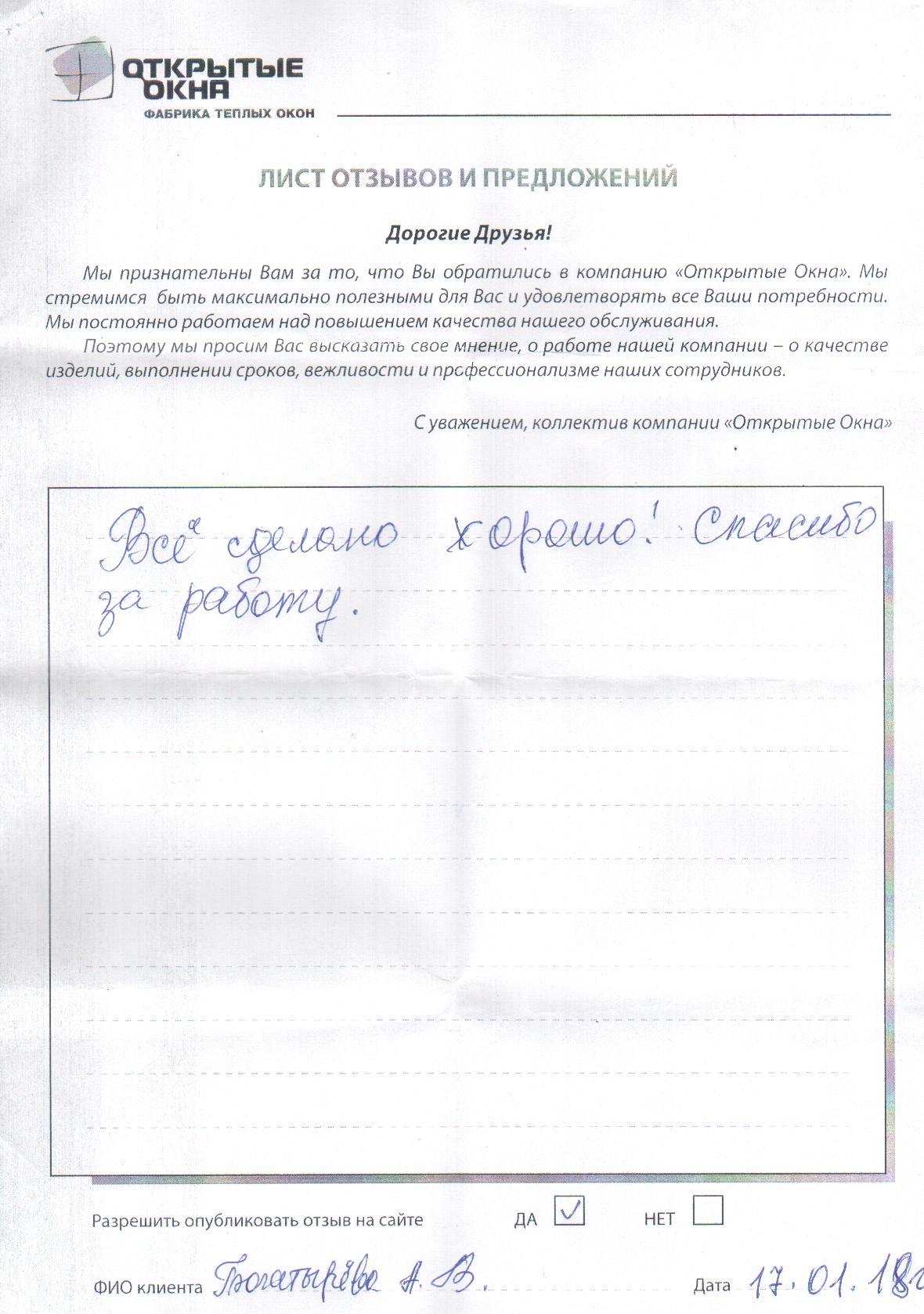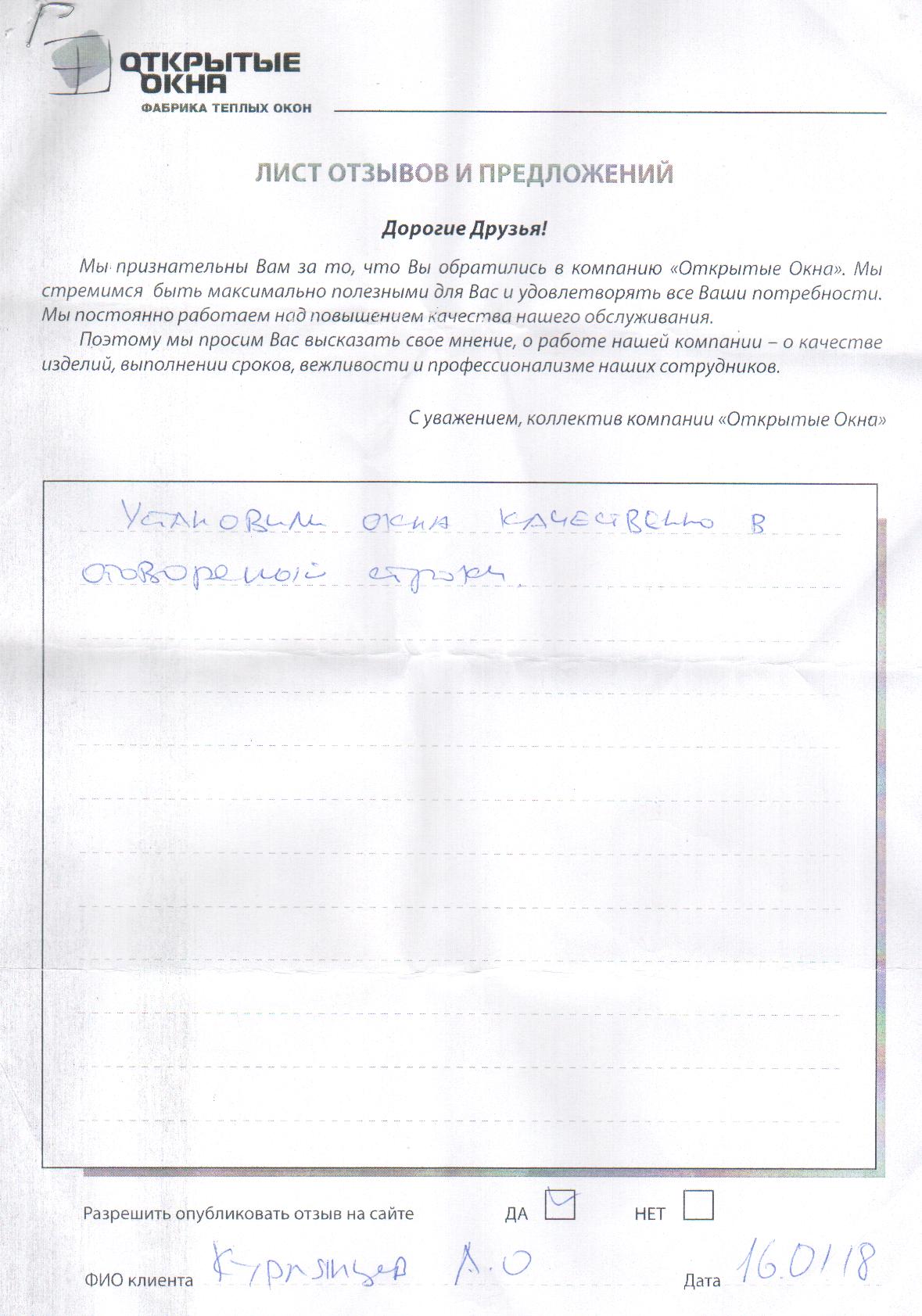 Спасибо за хорошее качество окон